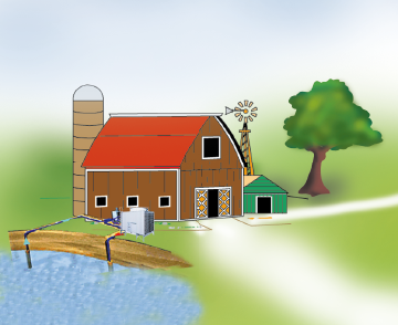 In summer, the surface water/groundwater covers part of the cooling load and the cooling tower is activated for the part that is not enough.