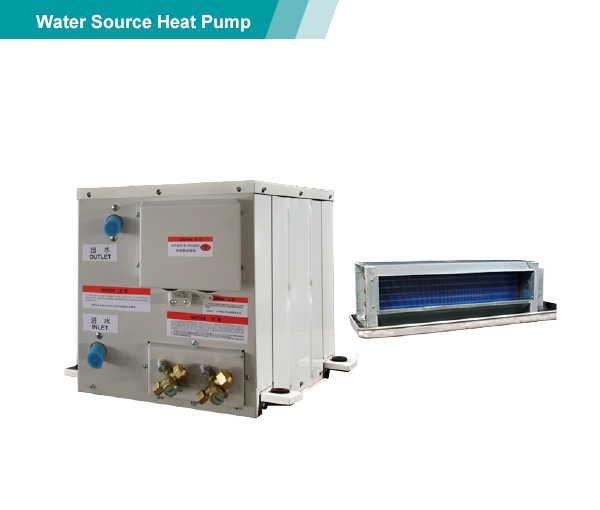 整體式/分離式水源(地下水工況,水環(huán)工況,地下環(huán)路工況)熱泵機(jī)組以電作為動(dòng)力,采用系統(tǒng)循環(huán)水,從水井、湖泊、河流、海洋中抽取的水或埋于地下盤(pán)管中循環(huán)流動(dòng)的水為冷(熱)源,經(jīng)室內(nèi)循環(huán)空氣與室內(nèi)機(jī)熱交換器能量轉(zhuǎn)移后,送入所需空調(diào)房間。