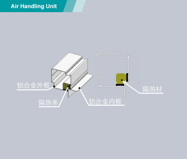 3377新一代MAH組合式空氣處理機(jī),艾洛斯(Aiolos)系列,采用防冷橋鋁合金框架結(jié)構(gòu)設(shè)計,面板與框架為壓扣連接方式。